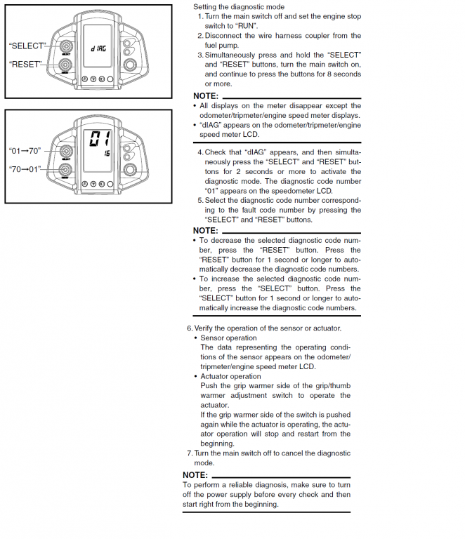Ok thanks....started getting a warning light last trip, but it was cold out and i was too much of a wuss to try and diagnose it trail side Light went out after cycling the key off then restarting, but dont remember if there was an actual code showing Riding a short trip tomorrow, so will look into further if it happens again.
