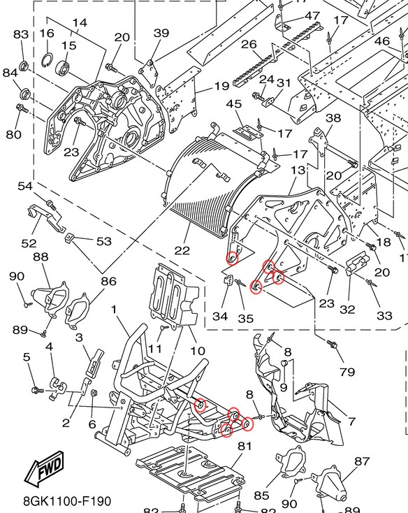 yamahas said:I think it might, the bolts holding the belly pan may be attached to the front frame. I have not pulled my frame off for a couple of years not so I can't tell for sure.