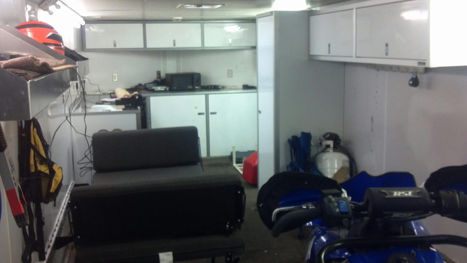 A couple shots folded into a Dinnet folded into a bed(naps) Can't see it foled up but you get the idea. Hope this helps. I also added a fridge and 40 BTU furnace that runs going down the road to thaw the sleds out