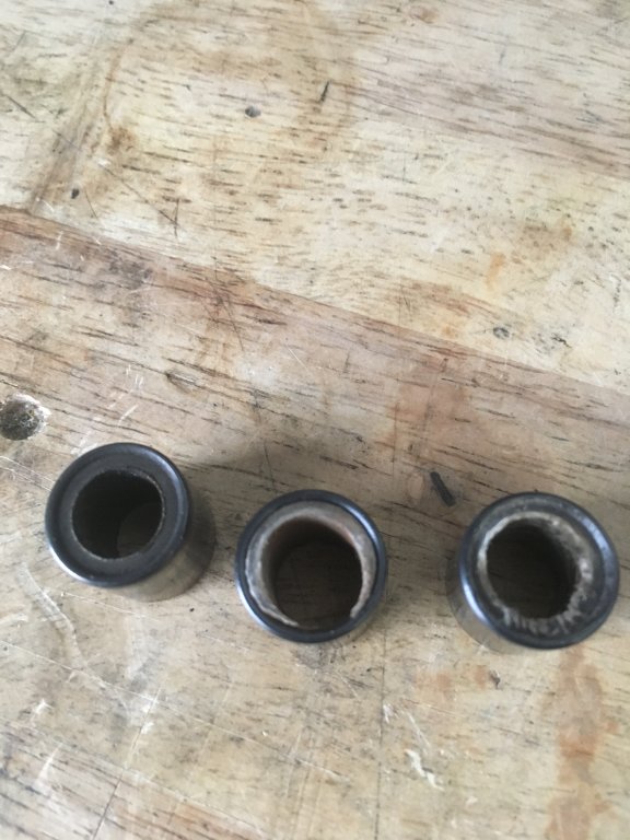 Those are "fiber"type bushing and like all roller the bushing is coming out clockwise. When the roller can't turn the bushing worn extremely fast.