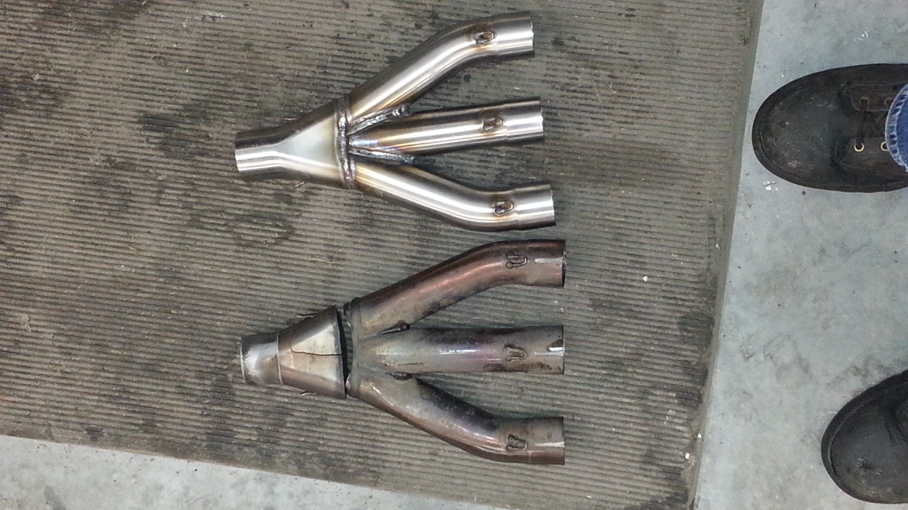 Pics are on page 1. The collector (manifold) sepparated on the back where the exhaust pipes come together.