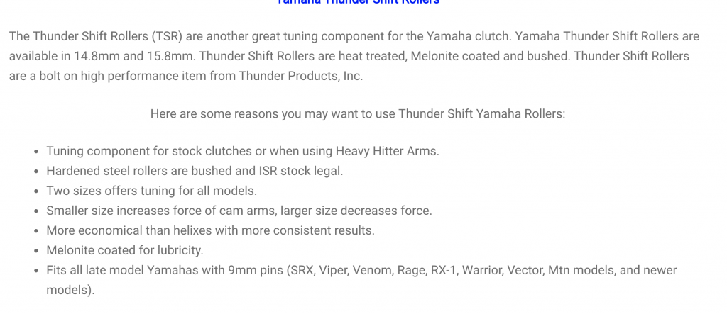 Yes maybe the team may be a cheaper primary than those other clutches(tap and stm) but with wider belt,need to match secondary,more pricy cat belts,and still no guarantee belts will last any longer.My stock primary rollers were hammered out quickly after installing the Hurricane Jukebox. I was way off initially on clutching(TP Orange and reverse angle helix) like many of us were early on which sure didnt help the rollers.