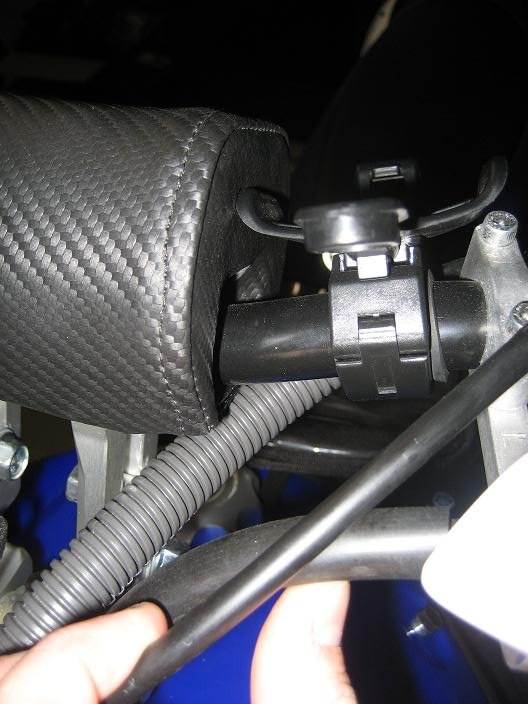 Here is what I have. You have to run the upper knob through the hole then lock it in the bottom clip. Between that and the pad it hold it real tight. We will see what happens