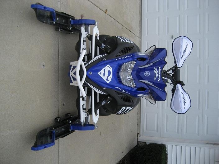 The white ones came in right before the last set of pics. I have blue and white plastic, and white oversized canvas. Don't know how long they are going to last with this new SkinZ full cover I have. That thing is tighter then a condom, and bends the snot out of my handguards. Don't know if they will want to come back when its cold out. Tried the Yamaha one, and with the sport grab bar, and riser it was difficult when it was hot out. No way it would work in the cold.
