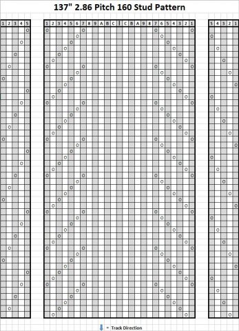 if you do sell these i would be putting in 160When utilizing the black template shown in the image above, you just follow the design shown below. This design shows a studding pattern with 112 studs on the inside and 48 on the outside. The one shown below will avoid studding within the center 3" of the track.