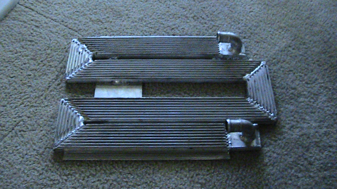 I hacked up my take-off running board coolers. Can't weld so I had that done, felt so sorry for the guy, he was chasing pinhole leaks for hours - probably from residual antifreeze contaminating the welds. Pressure test OK. Am hoping that there will be minimal flexing of the tunnel extension when I ride 'cause I am not sure how much punishment that this thing is going to take.