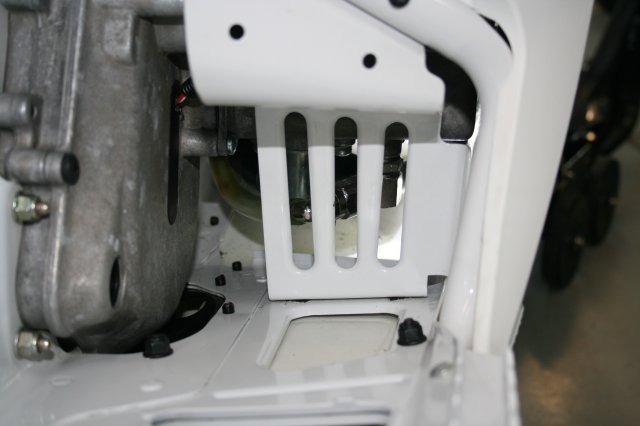 With this setup the outlet can be faced so that the drain hose routes forward to the oil filter area or it could be switched and run rearward as it will swivel then lock down.
